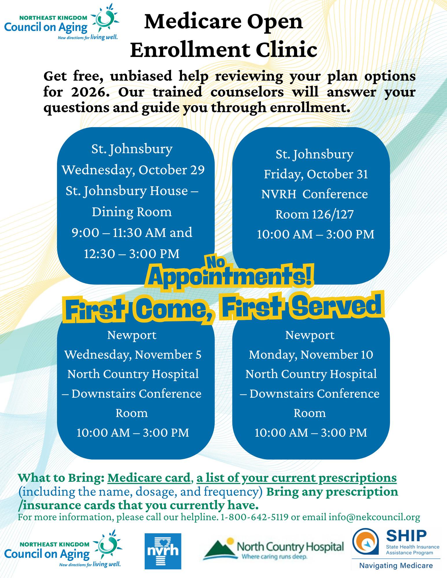 The NEK Council on Aging is committed to providing equal opportunity in the terms and conditions of service and employment without regard to sex (including pregnancy and pregnancy-related conditions or lactation), age, race, color, religion, physical or mental disability, national origin, place of birth, ancestry, sexual orientation, gender identity or expression, marital status, veteran status, genetic disposition, a positive test result from an HIV-related blood test, crime victim status, or any other protected status under applicable federal or state law.
