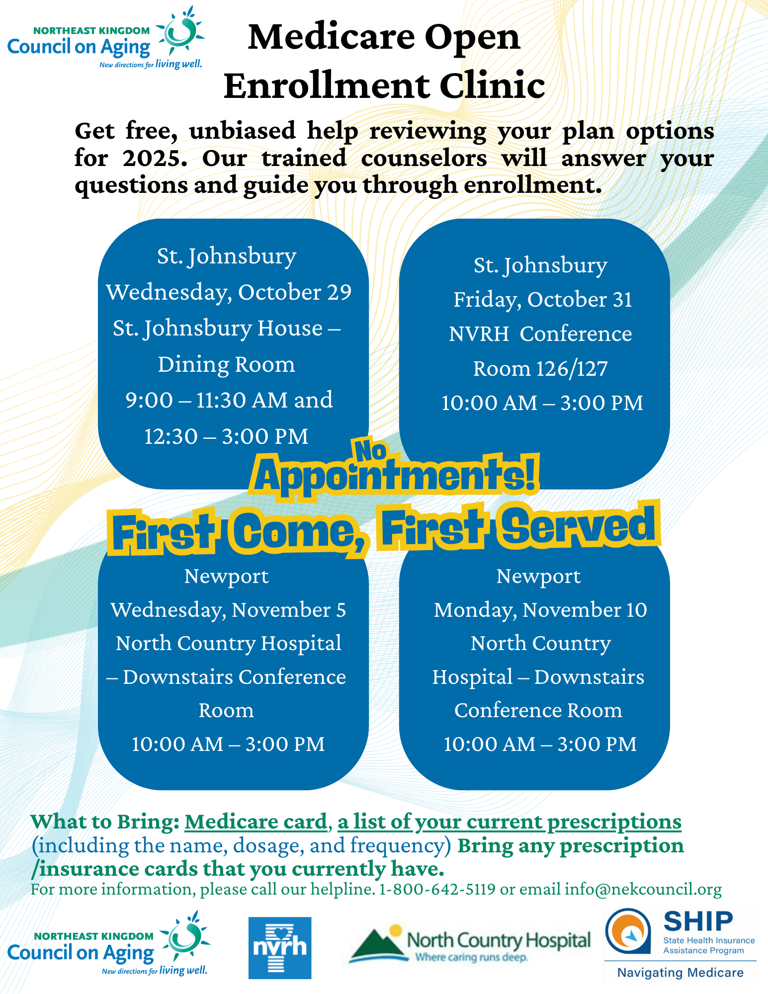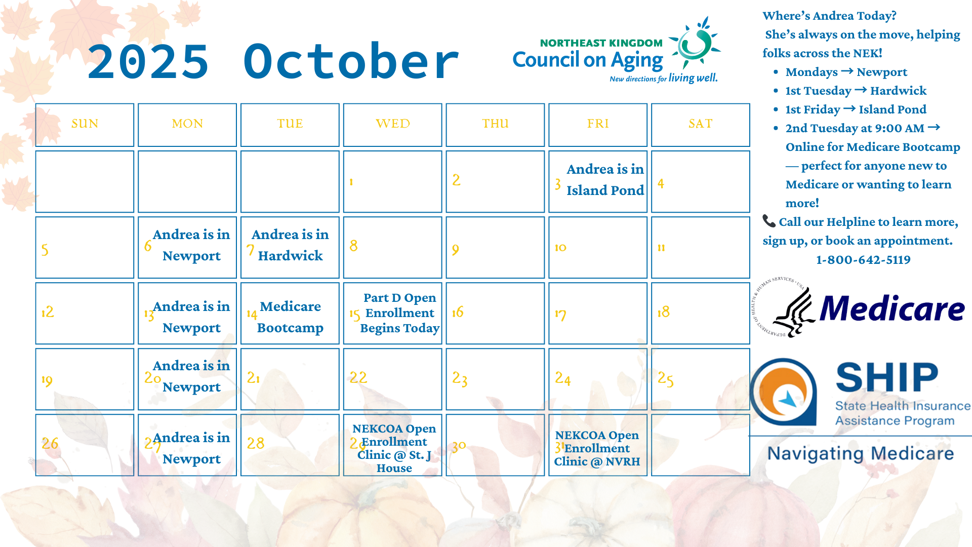 Call our Helpline at 1-800-642-5119 or email info@nekcouncil.org to connect with our SHIP team.