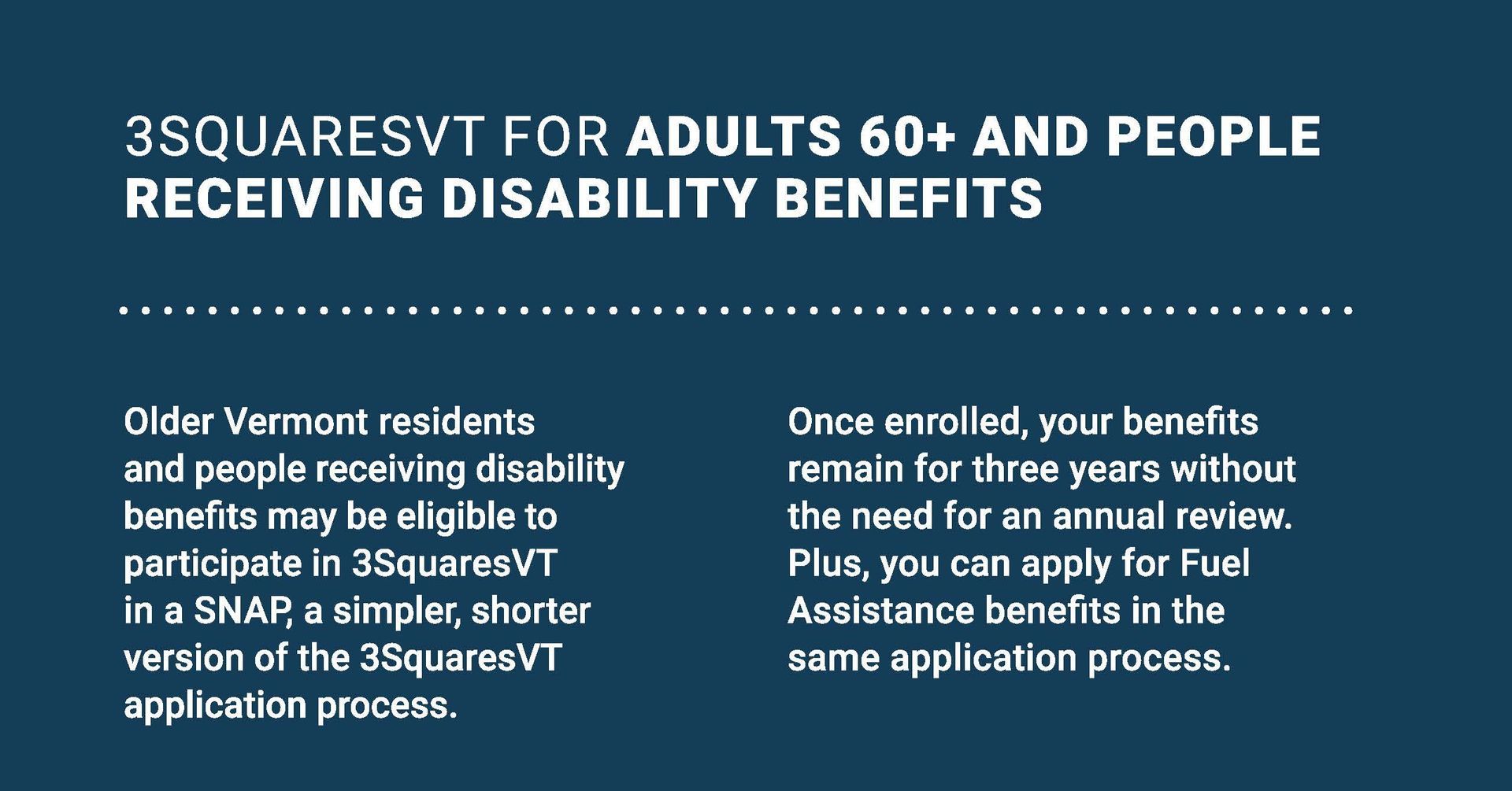 3SquaresVT is Vermont’s food assistance program that helps older adults and people with disabilities buy groceries each month. Many who qualify haven’t applied—often because they don’t realize they’re eligible.